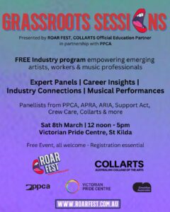 Catch Media Arts Lawyers very own Lawyer, Mary Whitehead, and AIR’s CEO, Maria Amato speaking at the ROAR FEST Grassroots Sessions ‘Managing money in the Music Industry’ panel this Saturday!